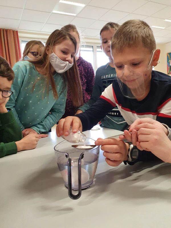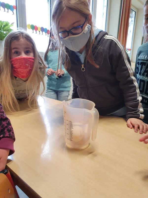 Die 4. Klasse beschäftigt sich aktuell im Sachunterricht mit der Entwicklung des Huhns. Aufgrund dessen durften die Schüler und Schülerinnen verschiedene Experimente mit Eiern durchführen. Das Highlight dabei war eine Blindverkostung. Die Kinder probierten unterschiedliche Eier (Bodenhaltung, Freiland, Bio) und versuchten sie anschließend zuzuordnen.